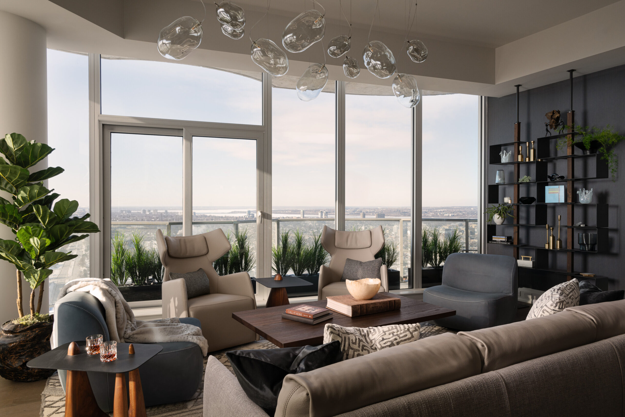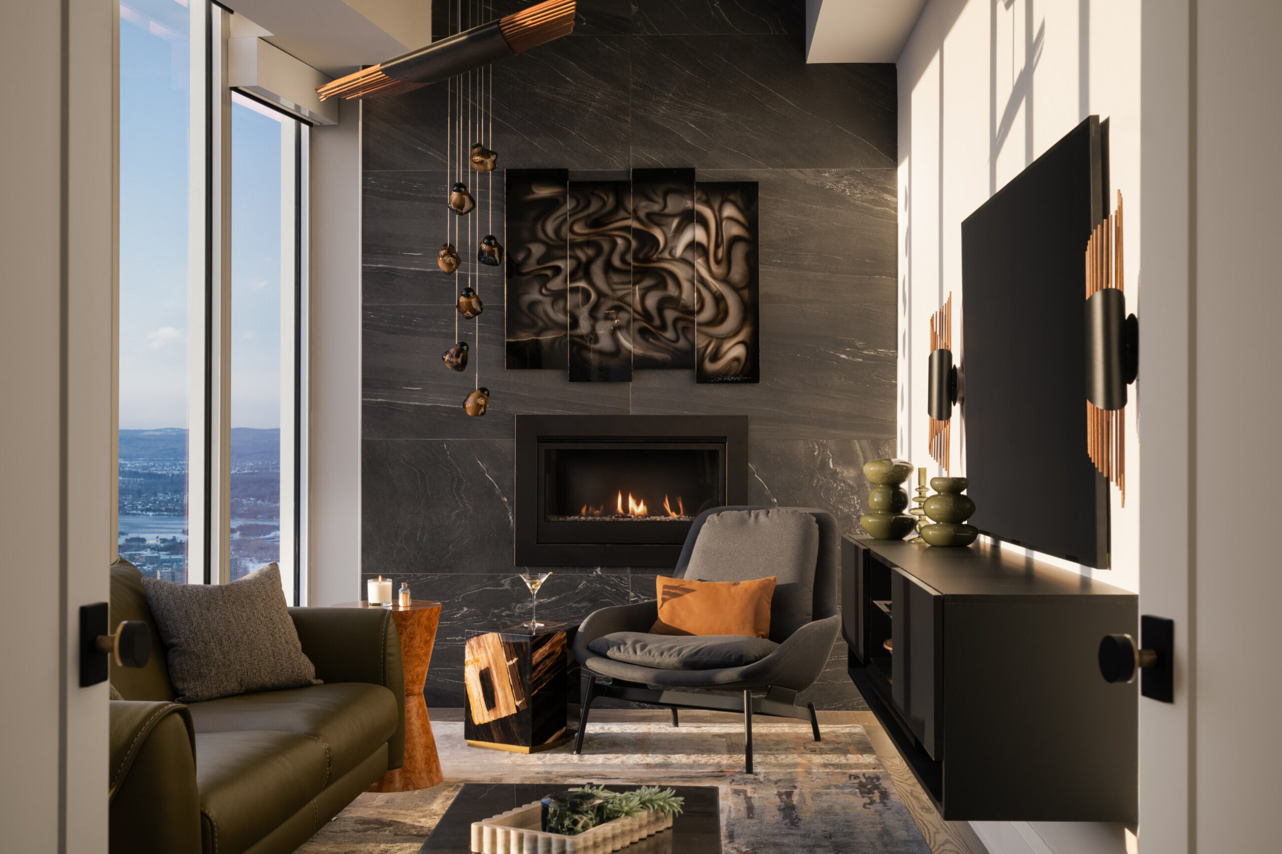 The owners, entrepreneurs in the natural health and fitness industry, moved into the 2,200 square-foot condo, their city pied-a-terre, in 2023. They felt it to be cold and uninviting. At the time, it was extremely builder basic, with finishes that didn’t live up to the views. The couple engaged Nathalie Auger from TouchStone Interiors to give the space a facelift.
