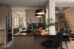 “A good example of this is the powder room; we have glossy gold backsplash tiles against rough-textured tiles on the wall, cool grey colours with warm wood tones. Every room has a touch of simple elegance: contemporary lines mixed with a few more classic touches. Whether it is the more traditional pendant over the island of the modern kitchen or the time-honoured herringbone tile pattern on the modern linear fireplace, these details are what make this type of design age well.”