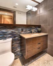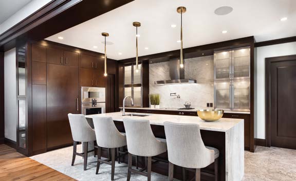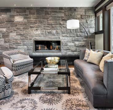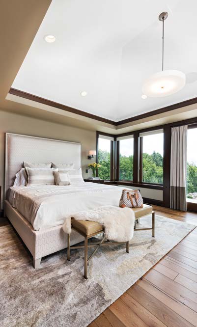 Jason Bellaire and Denise Hulaj of Ott awa’s StyleHaus Interiors, who had worked with Malcolm on another project, were brought on board and took the helm in selecting all furniture, accessories, millwork, ti le, window and wall treatments and lighting. It was the biggest job they have tackled to date, working with the client for 18 months. The project’s builder/contractor was D.C. Snelling Ltd.