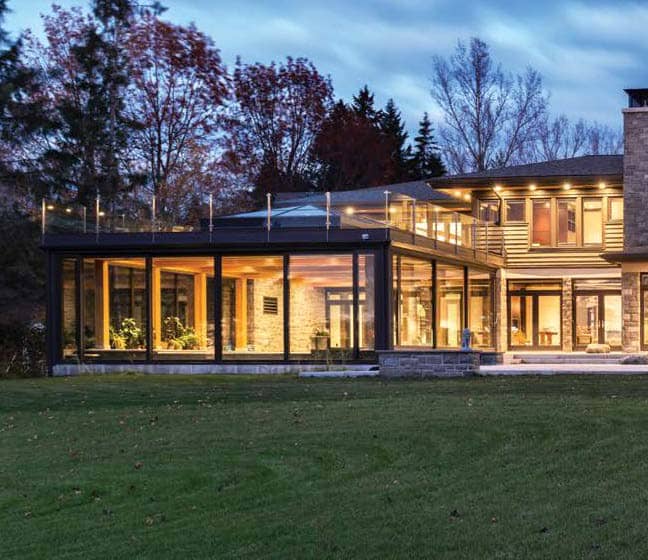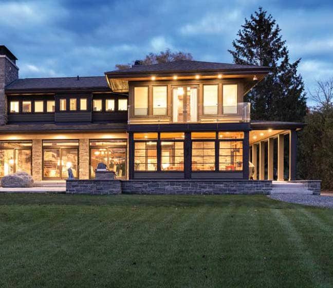 With its exquisite natural setting, horizontal lines and low-slung roofline, there’s no doubt Frank Lloyd Wright would have approved of this superbly crafted riverfront home in Manotick. Located down a sweeping driveway and sheltered from passersby on River Road by a band of thick mature trees, the 8,500-square-foot custom home blends harmoniously with the idyllic landscape on the banks of the Rideau River.